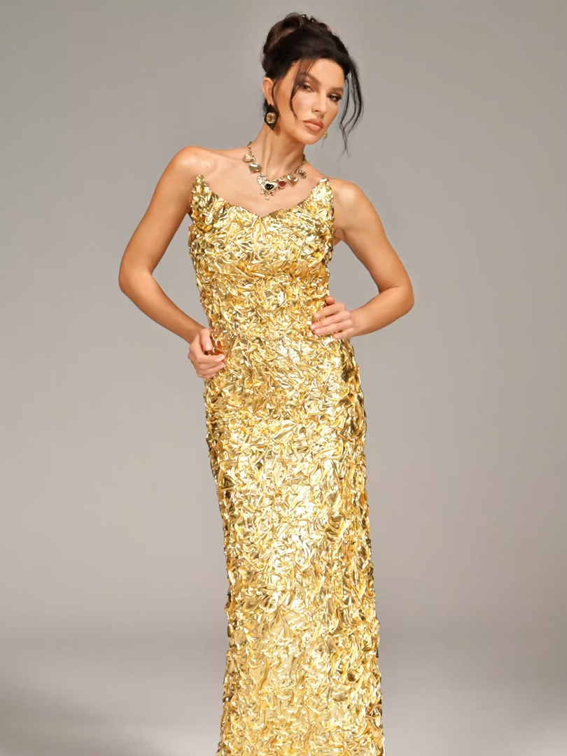 Add a touch of luxury and opulence to your wardrobe with the Amabel Shoulderless Slit Maxi Dress. This exquisitely designed gown features a glamorous sweetheart shoulderless neckline, a figure-sculpting mermaid silhouette that cinches your curves, and a floor-length maxi hem with a daring back slit, crafted from a statement crinkled textured fabric that exudes timeless glamour. The bold, eye-catching corset lace-up back and textured finish make it the perfect statement piece for birthday parties, gala events, or any upscale evening occasion, and it is a must-have for any fashion-forward individual.