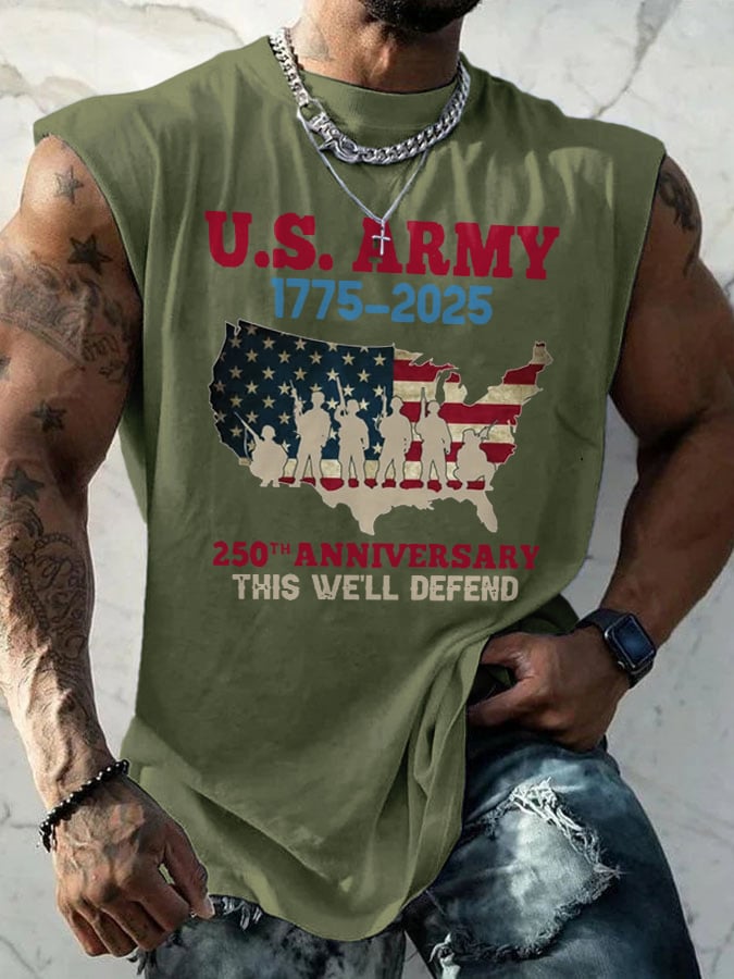 Retro U.S. Army 1775–2025 250th Anniversary This We'll Defend Print Tops Tank