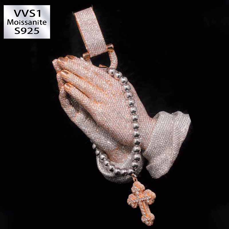 New Moissanite Praying Hands Cross Pendant