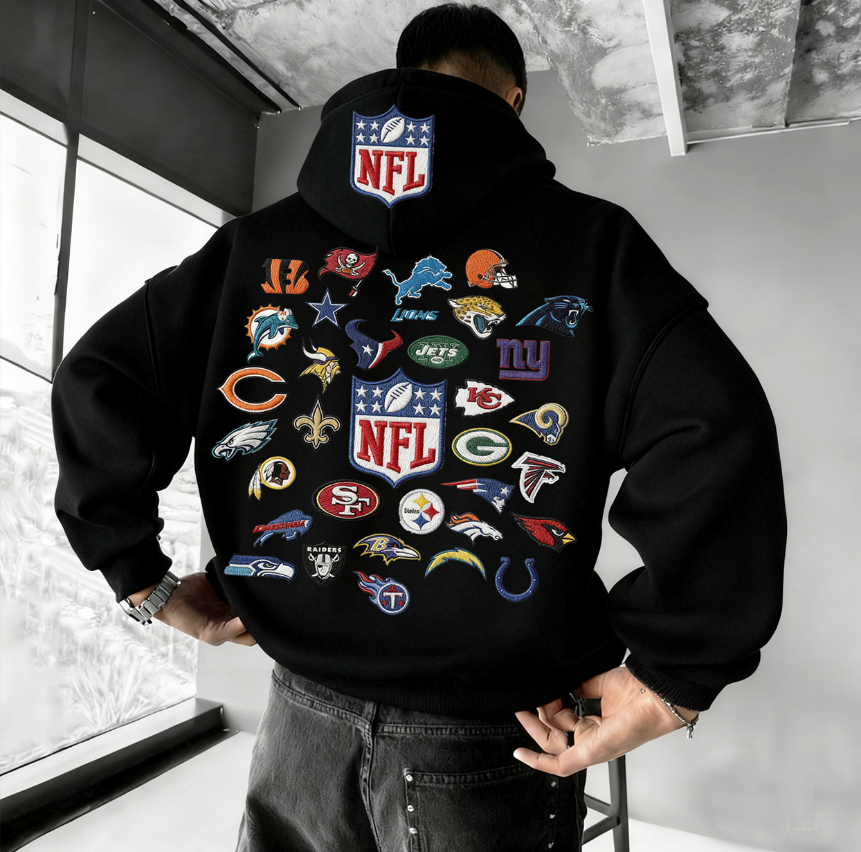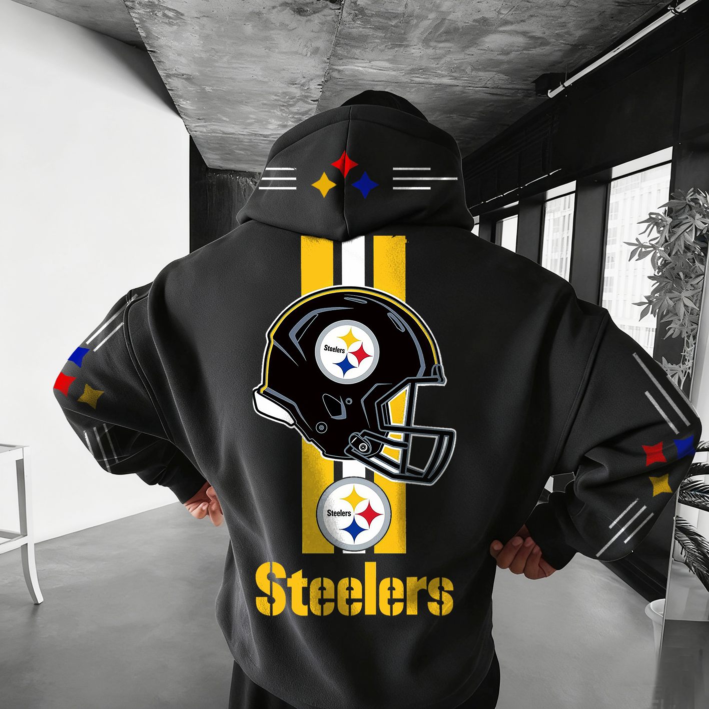 Hoodie With Iconic Helmet Design And Team Motif For Sports Fans