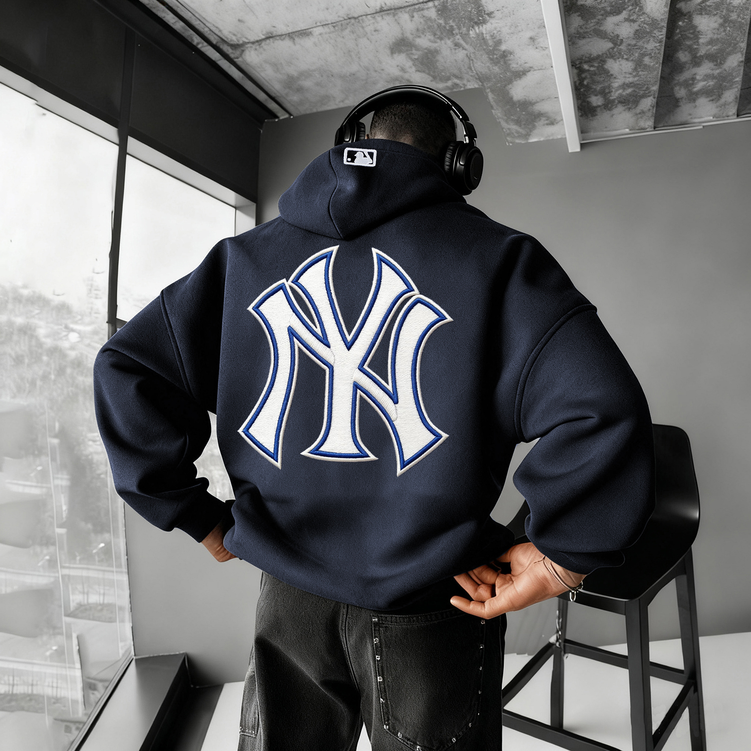 Unisex Casual Baseball Print Oversized Hoodie