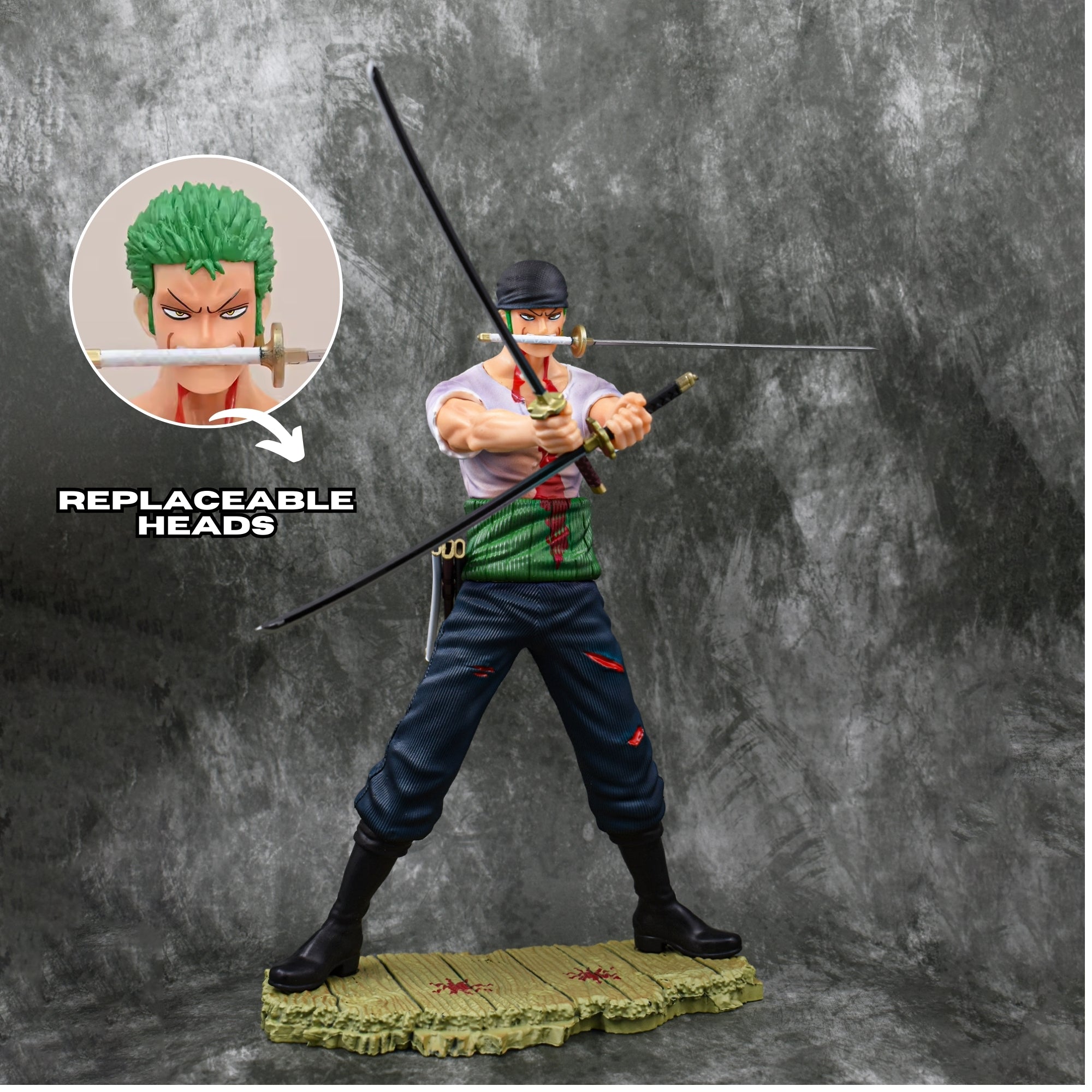 RORONOA ZORO THREE SWORD STYLE ICONIC ACTION FIGURE WIHT 2 REPLACEABLE HEADS (28 CM HEIGHT) - ONE PIECE