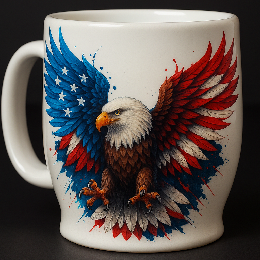 3D Bald Eagle Mug – American Flag Patriotic Coffee Cup for 4th of July
