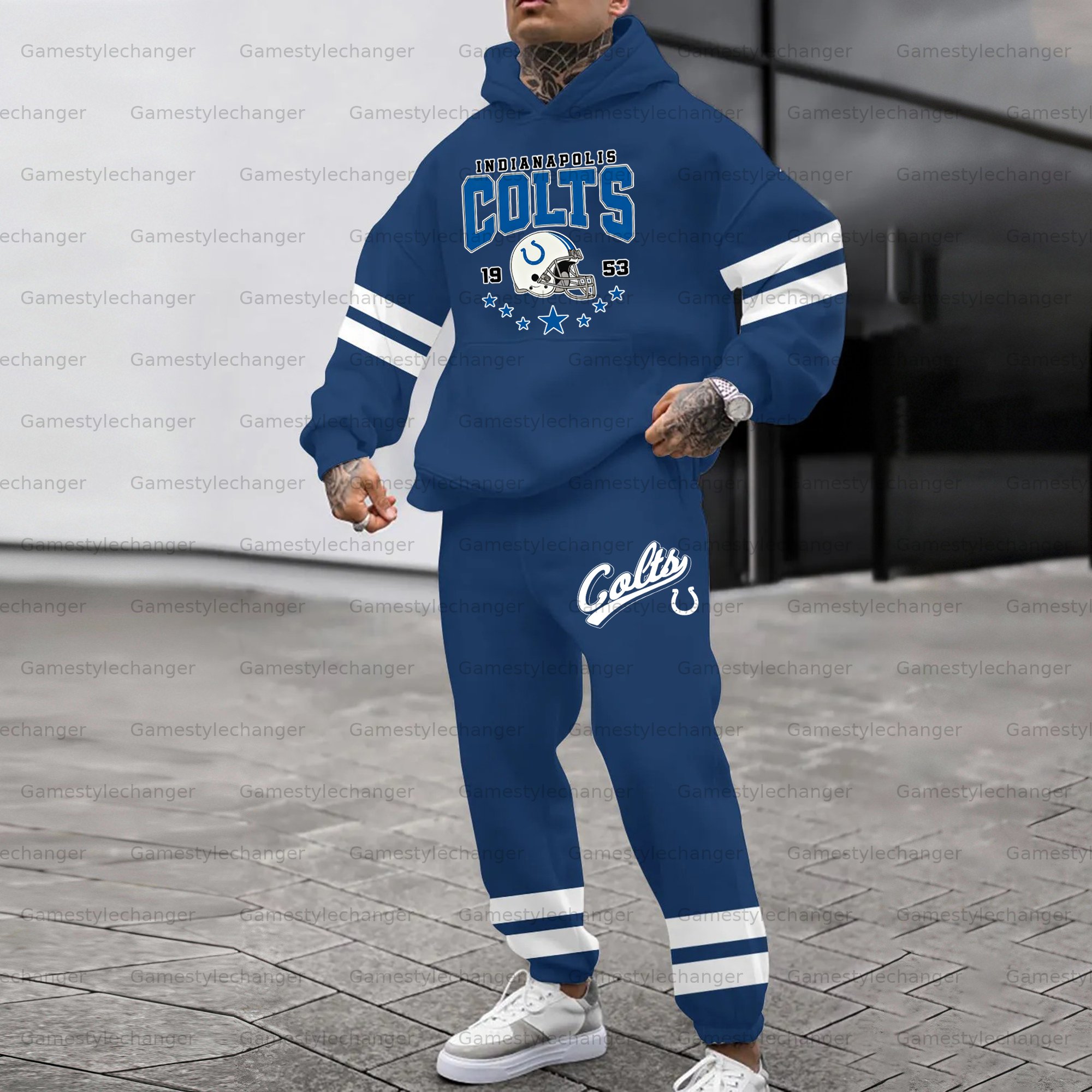 (Fleece-Lined Hoodie) ”Indianapolis Colts“3D Printed Pullover Hoodie And Sweatpant 2pcs Tracksuits