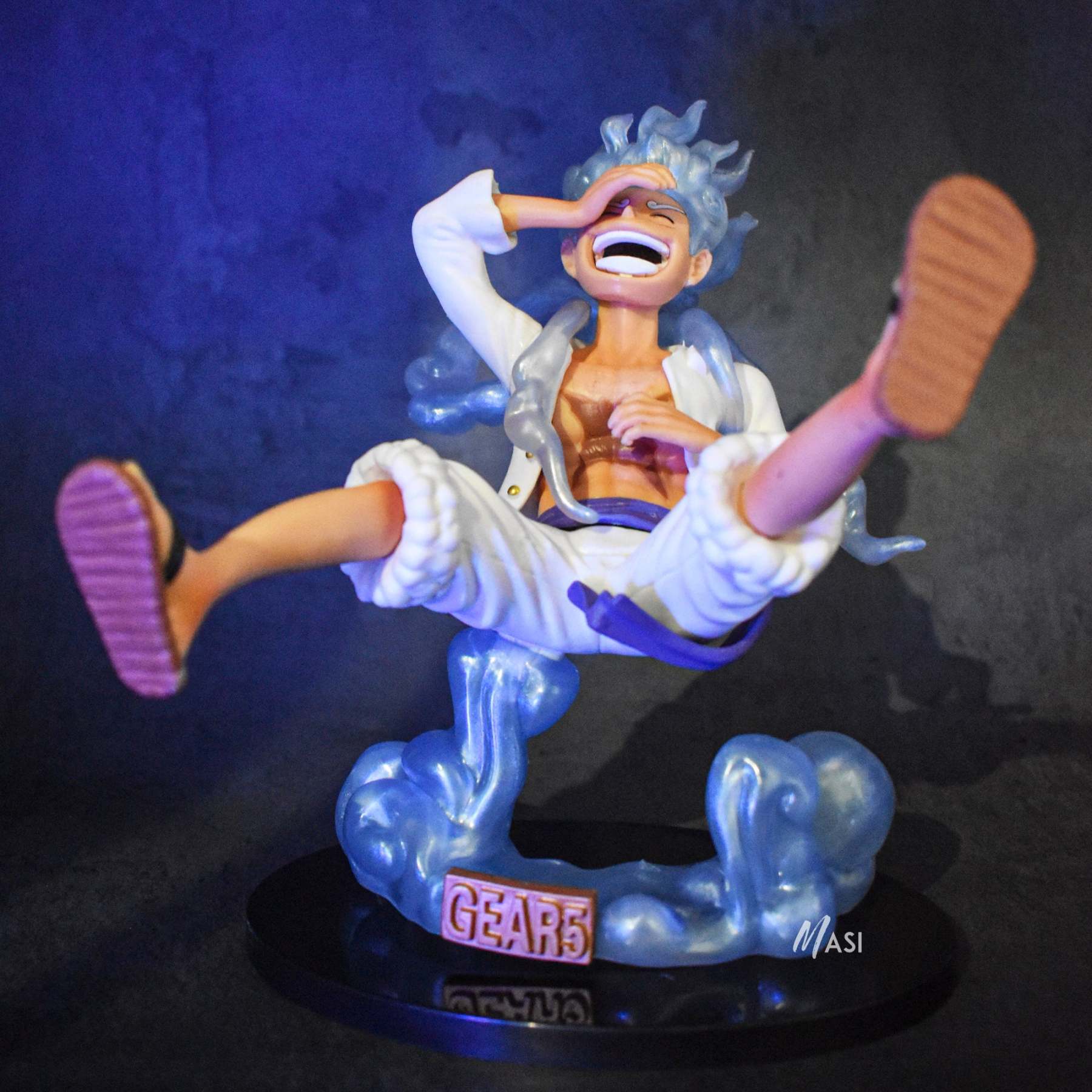 Introducing the dynamic Luffy Gear 5 Laughing Action Figure, standing at an impressive 20 cm tall. Crafted from high-quality PVC, this figure captures every detail of Luffy's iconic Gear 5 form, from his intense expression to his dynamic pose. The included stand ensures stability, allowing you to display this piece proudly in your collection.