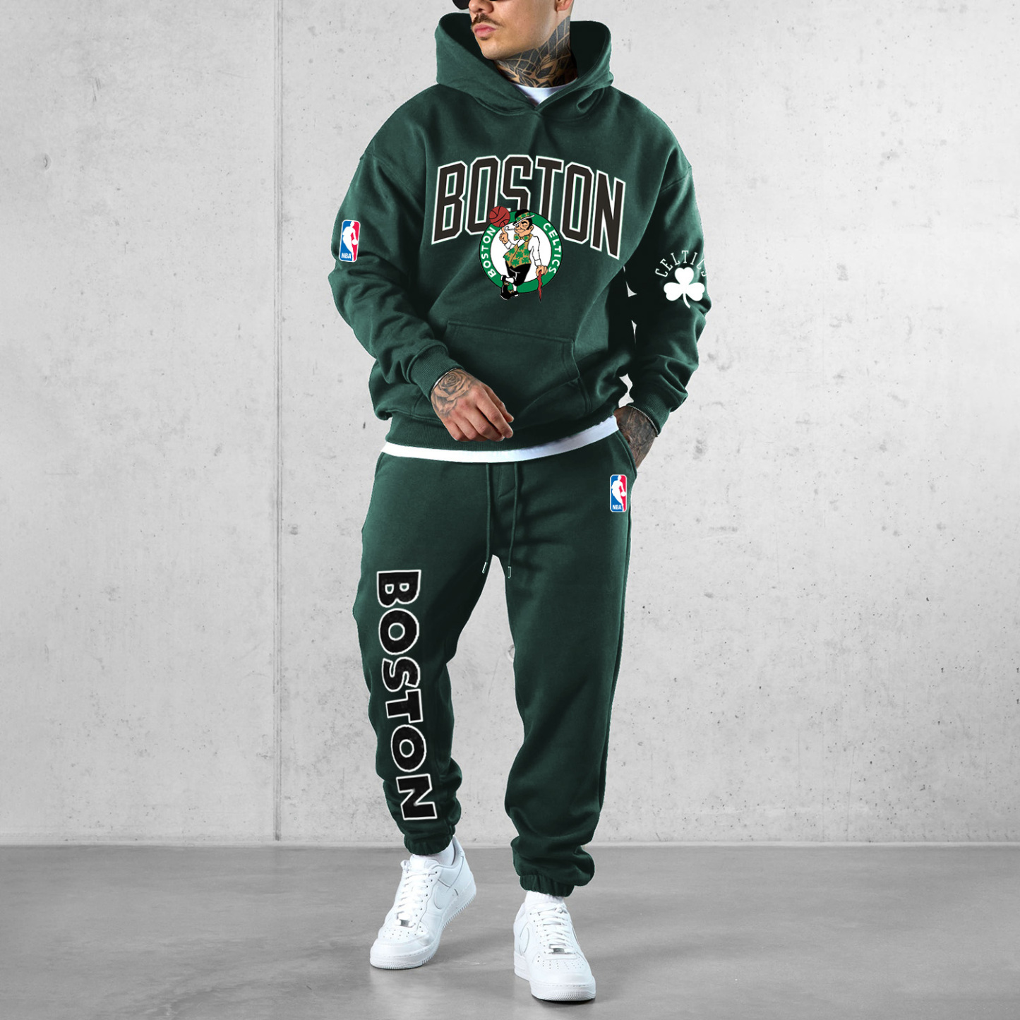 Men's Basketball Print Loose Hoodie Set