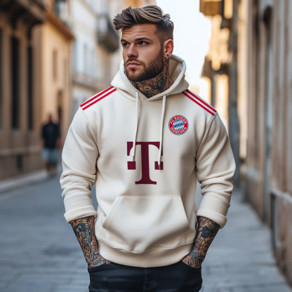 Men's Football Munich Pocket Long Sleeve Beige Loose Hoodie