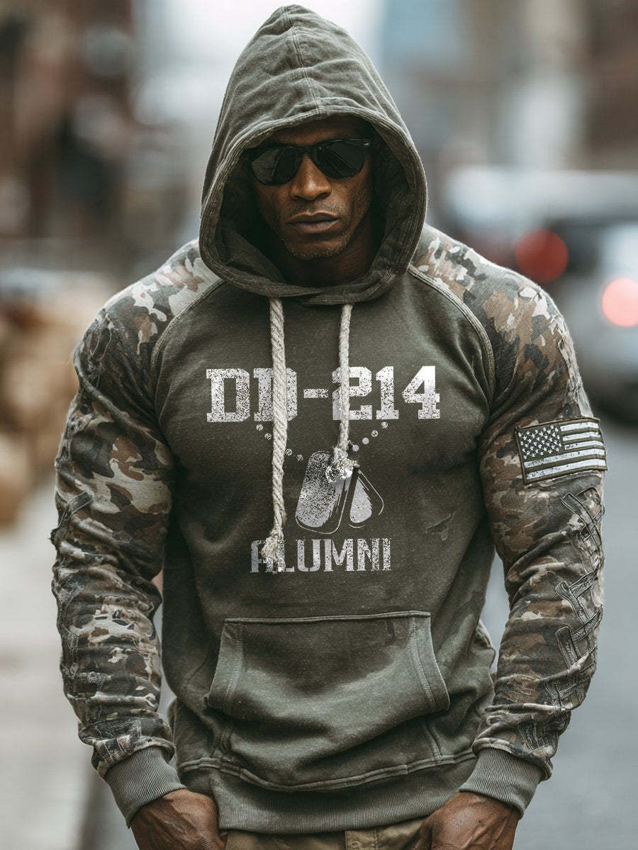 Men's Retro DD-214 Alumni Veteran USA Flag Camouflage Print Casual Hoodie