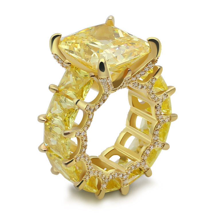 Radiant Cut Yellow Diamonds Golden Tone Engagement Ring