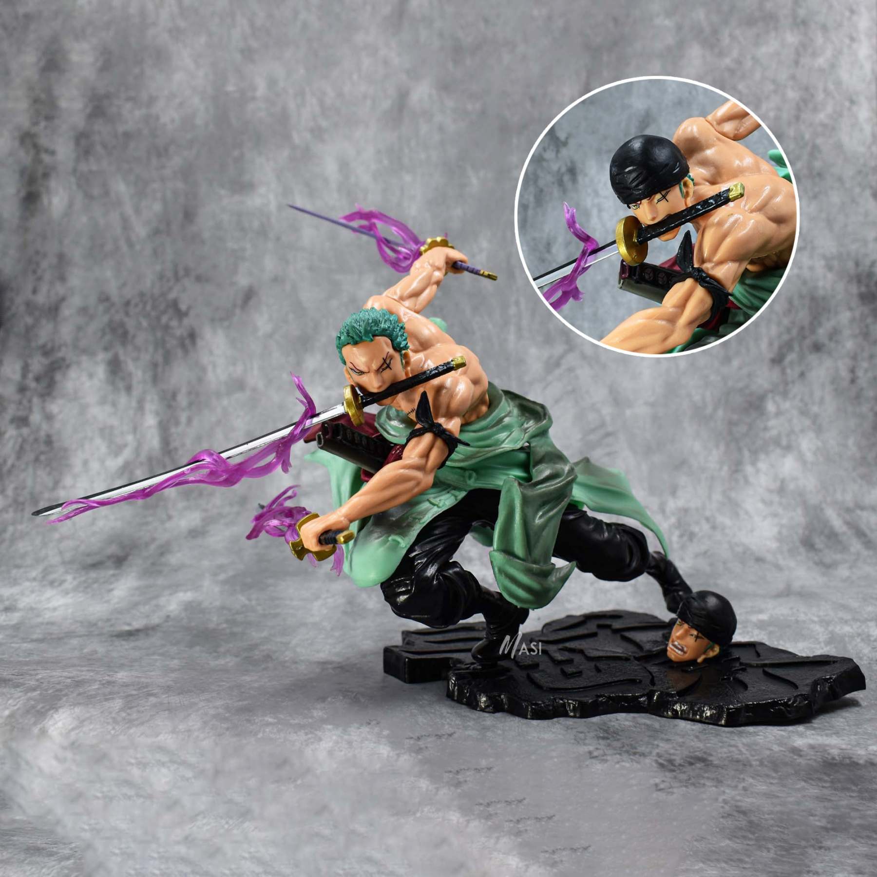 RORONOA ZORO ACTION FIGURE WITH 3 SWORDS & 2 HEADS - ONE PIECE