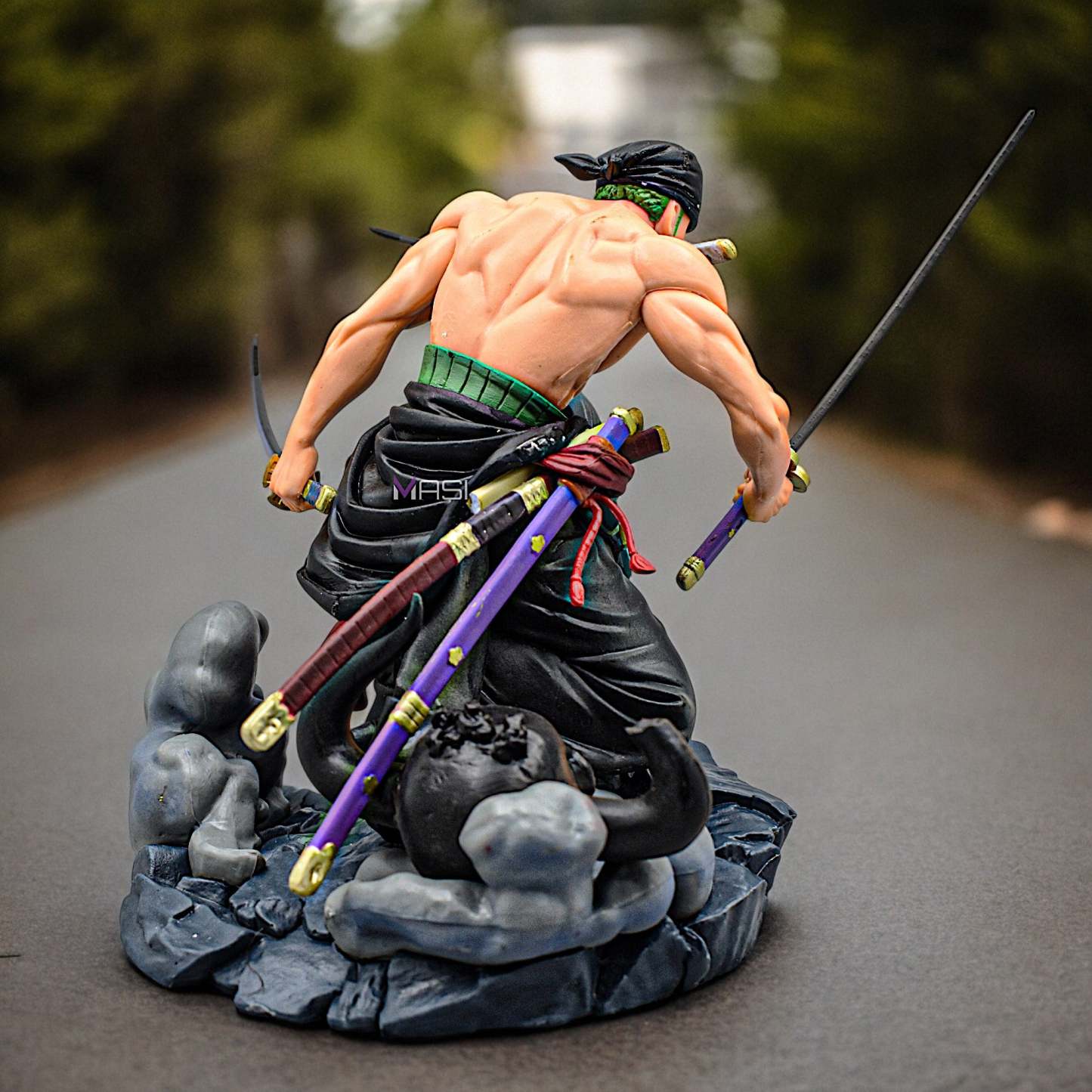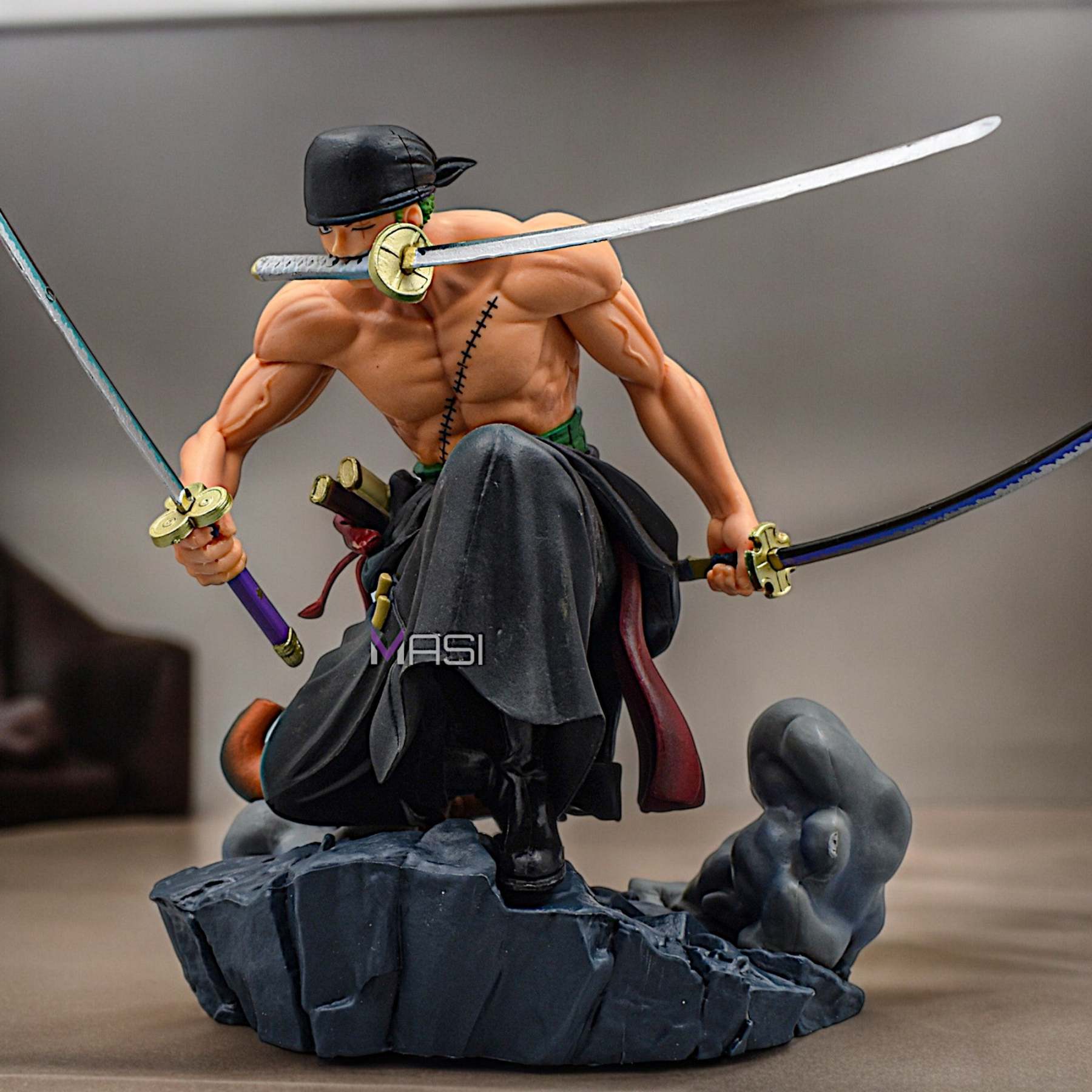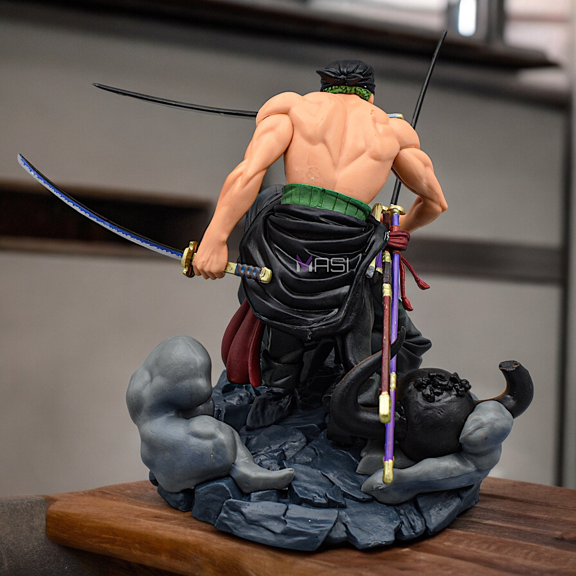 Introducing the Roronoa Zoro Three Knife Flow Overseas Restrictions action figure from the renowned anime series One Piece. Crafted with high-quality PVC material, this meticulously detailed figure captures Zoro in his iconic three-sword style, ready for battle. Each sword is intricately sculpted, showcasing his formidable arsenal, while the included rock-style stand provides stability and adds a dynamic flair to any display. Whether you're a seasoned collector or a devoted fan, this action figure brings the spirit of adventure and strength of character embodied by Zoro to life in stunning detail.