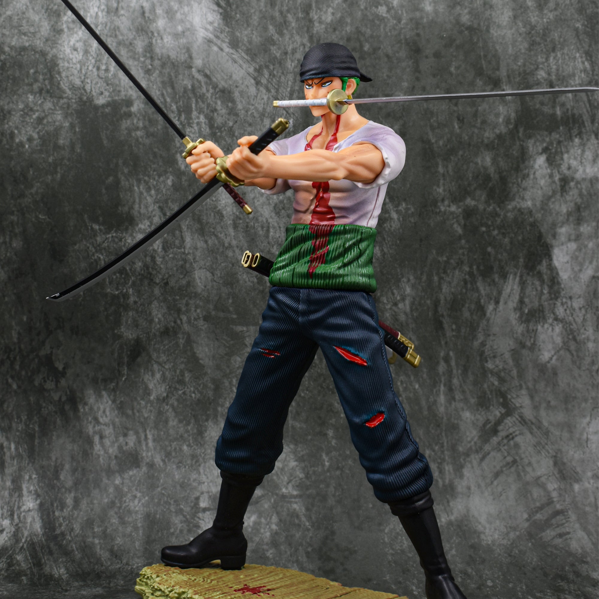 Unleash the warrior spirit with this Roronoa Zoro Three-Sword Style action figure! Standing 28 cm tall, this highly detailed PVC collectible comes with a stand, 3 swords, and 2 replaceable heads, making it a must-have for One Piece fans!