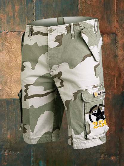 Vintage U.S. Army 250th Anniversary This We'll Defend Est.1775 Camouflage Print Cargo Shorts